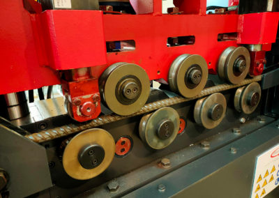 Die Maschine besteht aus 4 unteren motorisierten Rollen und 3 oberen Leerlaufrollen, die vertikal verstellbar sind (entsprechend dem zu richtenden Drahtdurchmesser), deren Funktion darin besteht, das Material über seinen elastischen Bereich hinaus zu verformen und das Richten zu erreichen.