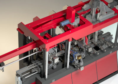 The second part is the JitLTG body machine. Feed by the first part of the line it consists in two main groups: the forming group and the welding group. The forming group permits the shaping of the stirrup with the just in time variation of the height, on the ground of the desired lattice girder. The welding group thanks to a resistance electro-welding process permits the welding of the stirrups to the longitudinal bars, assuring an accurate positioning through a sophisticated guide system. The control of the upper longitudinal bar’s position permits to obtain a finished product complying with the set up geometrical parameters.  The peculiarity of the Promostar welding system consists in the just-in-time orientation of the welding bases that are always parallel to the layer upon which the stirrup lies; this layer changes its inclination on the ground of the lattice girder height’s variation. An advancement carriage permits the advancement, step by step, of the lattice girder while a shear allows the cutting of the finished produced lattice girders.